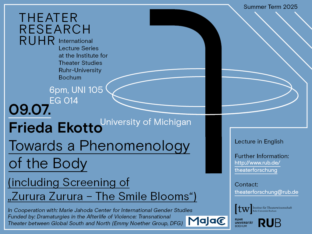 Darüber hinaus gibt es am 10.7. von 10-12 Uhr einen Workshop mit Frieda Ekotto, an dem interessierte Kolleg*innen (insbesondere auch Promovierende und Postdocs) gerne nach Anmeldung teilnehmen können: dramaturgies-afterlife@rub.de